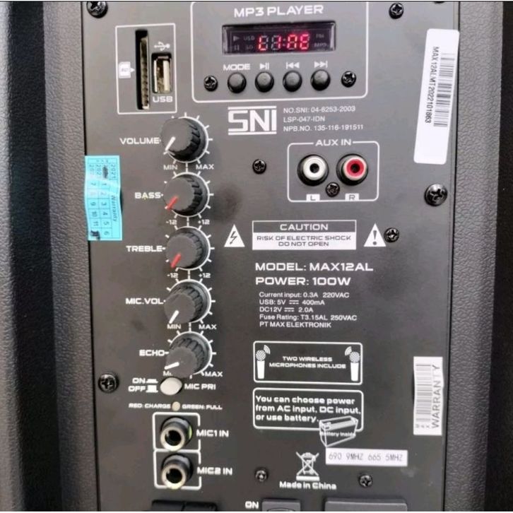 SPEAKER BLUETOOTH FULL BAS SPEAKER AKTIF PORTABLE BARETONE 12 INCH BLUETOOTH ORIGINAL MAX12AL