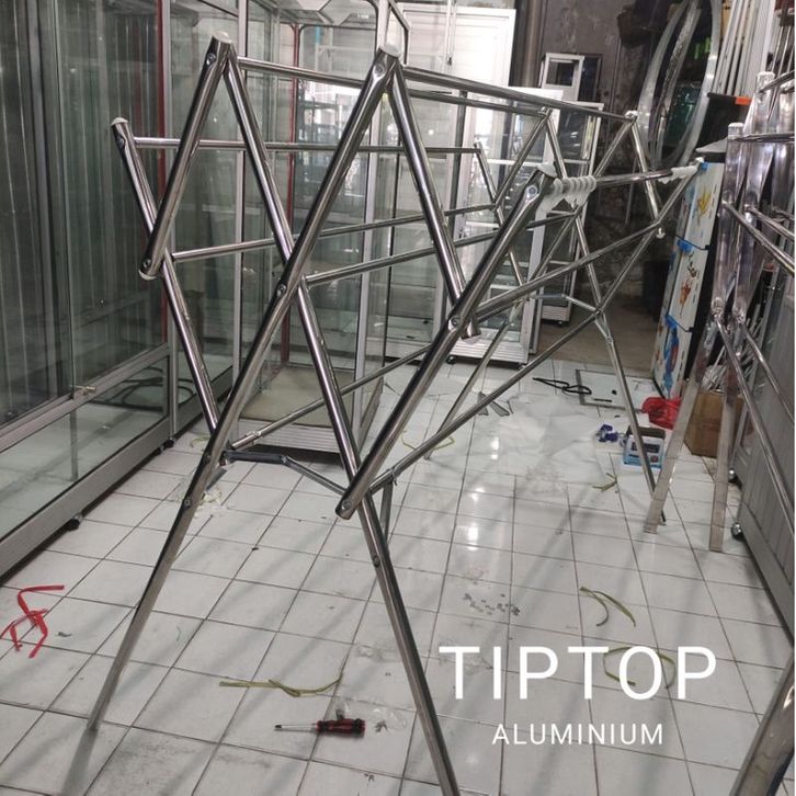 Jemuran Baju Premium Stainless Steel Modern Panjang 180 cm Tinggi 150 cm Kaki Bulat Anti Karat Kokoh