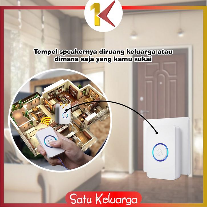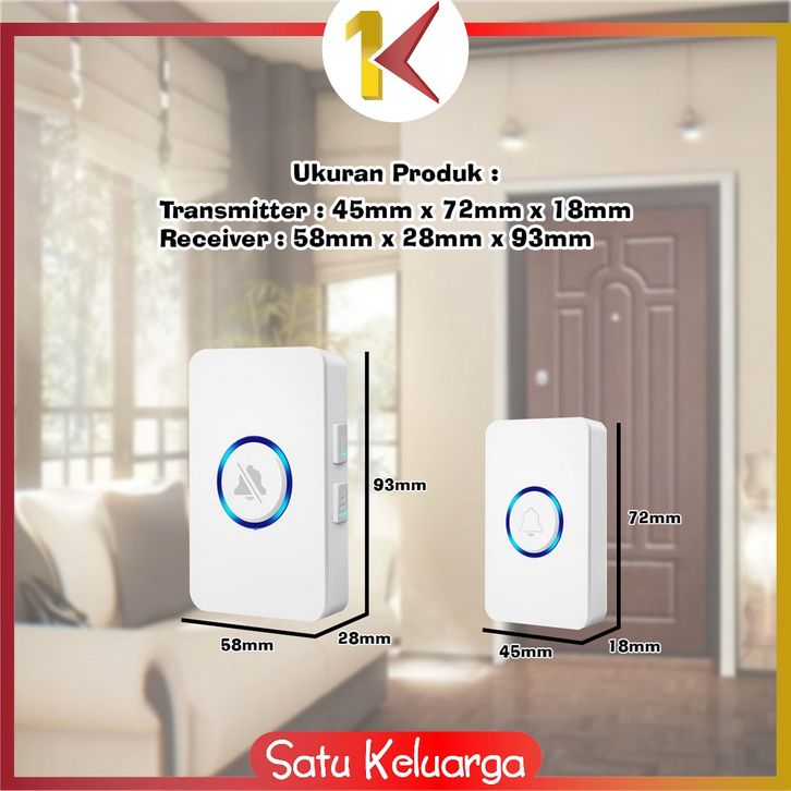 SK-C847 Bel Rumah Wireless Tanpa Kabel Nirkabel Remote 1 Transmitter 1 Receiver / Wireless Door Bell Rumah Kantor Waterp
