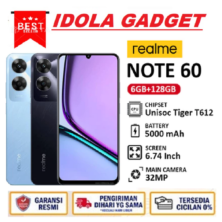 (GRATIS ONGKIR) Hp REALME NOTE 60 RAM 6+128GB | Unisoc Tiger T612 | Camera 32MP | Batery 5000mAh