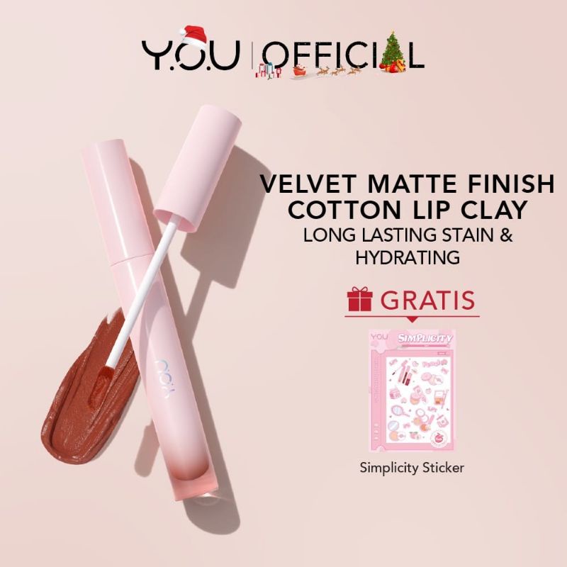 YOU Simplicity Cotton Lip Clay | Lip Stain Lipstick Lembut Melembapkan Tahan Lama