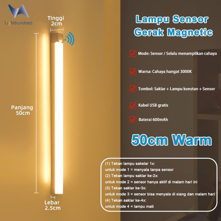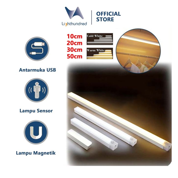 Lampu Sensor Gerak Magnetik Motion Sensor Stick Panjang LED Lighthundred 10/20/30/50CM Serbaguna Paket 2 Pcs Termurah