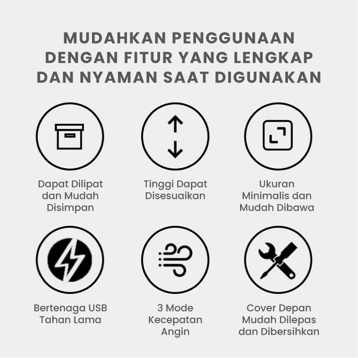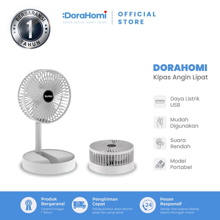 Dorahomi Kipas Angin Meja Lipat Portable Berdiri Usb Cas Baterai 2000mAh Putar Naik Dan Turun 180° Cocok untuk Kantor Pe