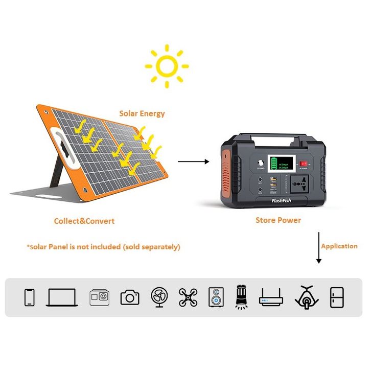 (Ready)FlashFish 220V 200W Power Station 40800mAh Portable Solar Generator Silent Genset with AC outlet for Camping Emer