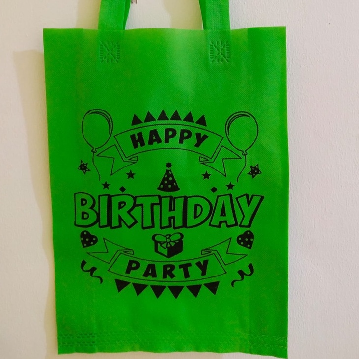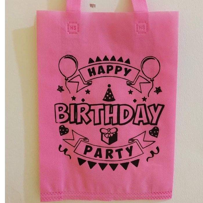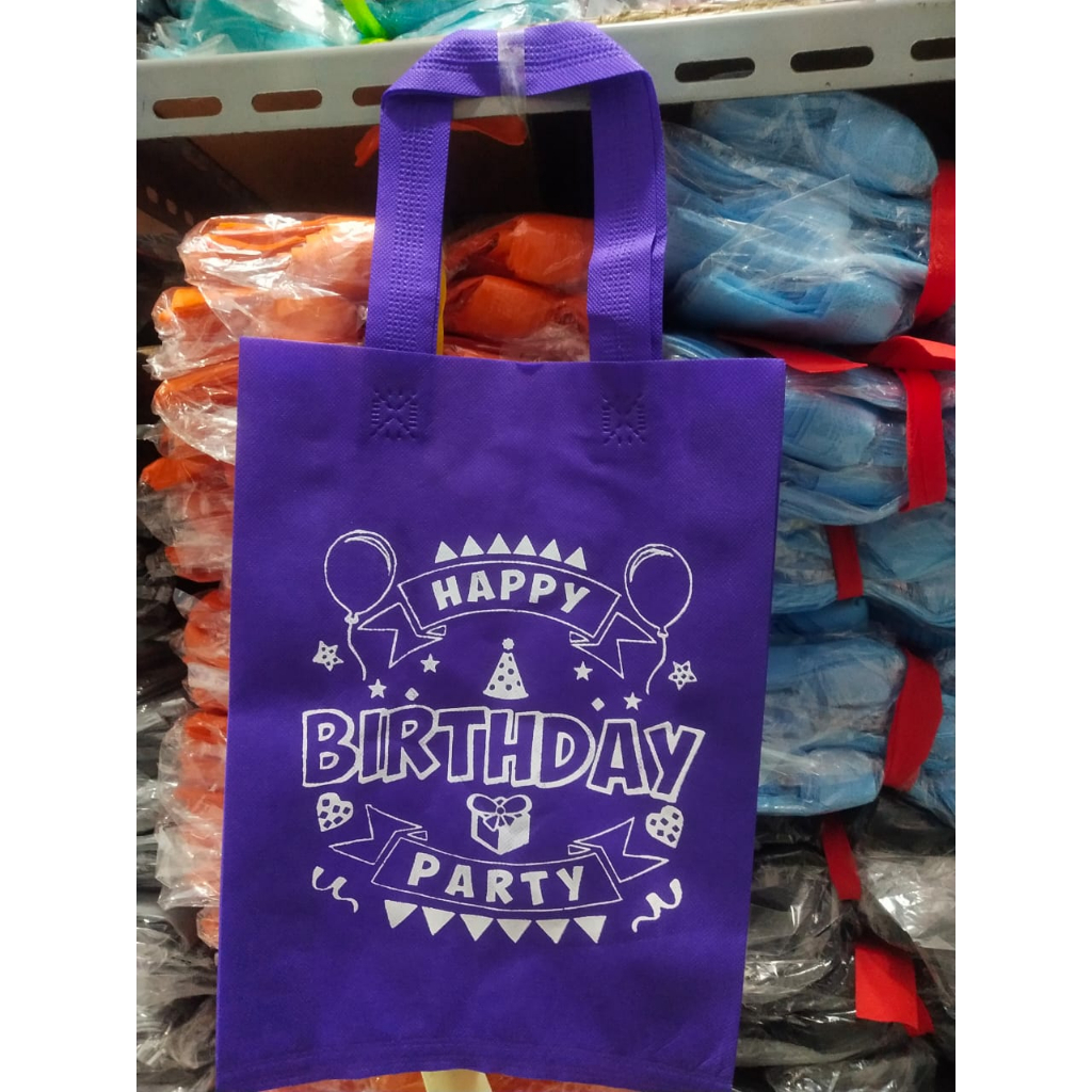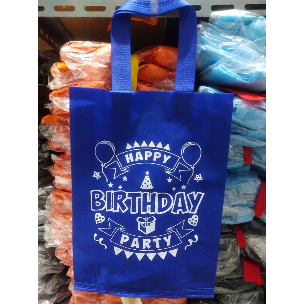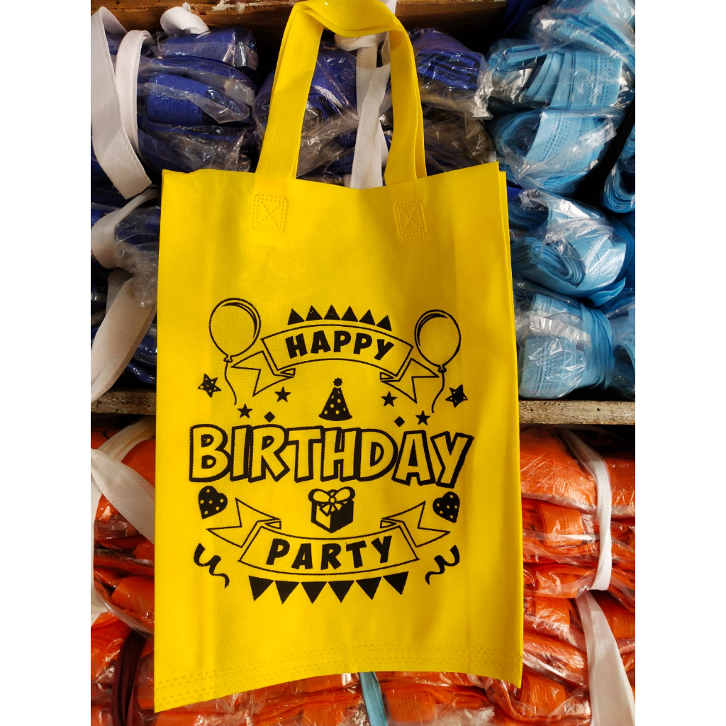 Goodie bag ulang tahun anak kain syukuran ultah souvenir karakter Tas Kain Spunbond Happy Brithday 20x25x8cm 12Pcs