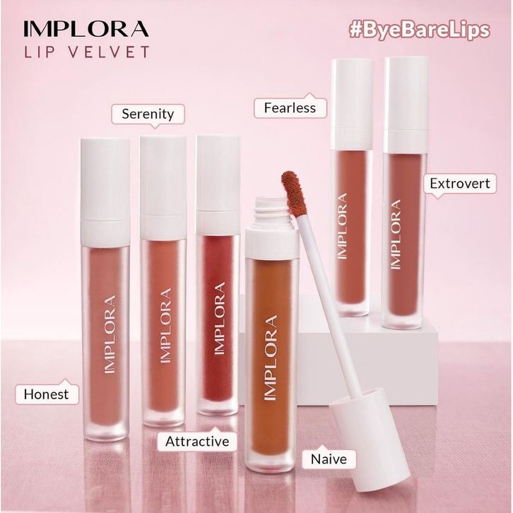IMP 01. DUSKY NUDE, IMP 02. TERRA COTTA, IMP 03. DARK BERRY, IMP 04. MEDELINE, IMP 05. ALLURE, IMP 06. LUMIERE, IMP 07.TRUFFLE MOUVE, IMP 08 PINK LATTE, IMP 09 BUTTERSCOTCH, IMP 10 GINGERBREAD, IMP 11 RED BEAN, IMP 12 BROWN SUGAR, IMP 13 HAZELNUDE, IMP 14 BABY ROSE, IMP 15 SALMON PINK, IMP 16 DUSTY PEACH, IMP 17 REDWOOD, IMP 18 RUBY, IMP 19 CAROLINA, IMP 20 RED GALA, Implora Dompet Lips, VELVET Extrovert, VELVET Fearless, VELVET Honest, VELVET Naive, VELVET Serenity, VELVET Attractive