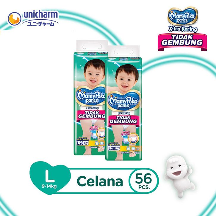 Popok Pampers Pemper Pempes Mamypoko Pants X Tra Kering Slim Tidak Gembung L 28 2 Packs Tipe Celana