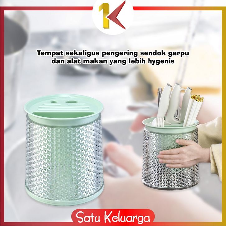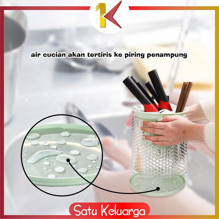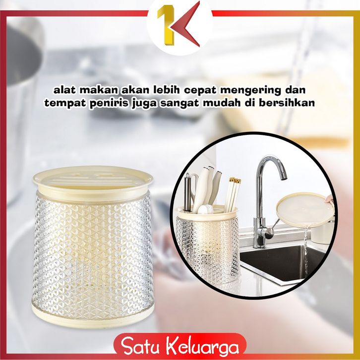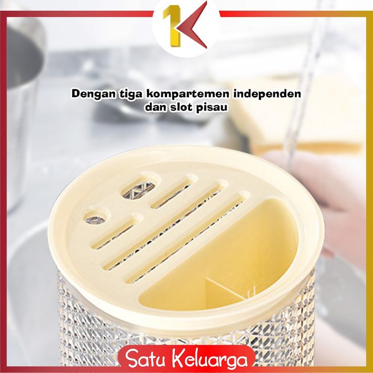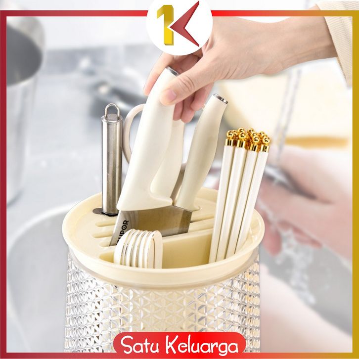 SK-C854 Tempat Sendok Garpu Sumpit Pisau Cutlery Holder Dengan Tirisan / Wadah Penyimpanan Rak Putar 360° Estetik