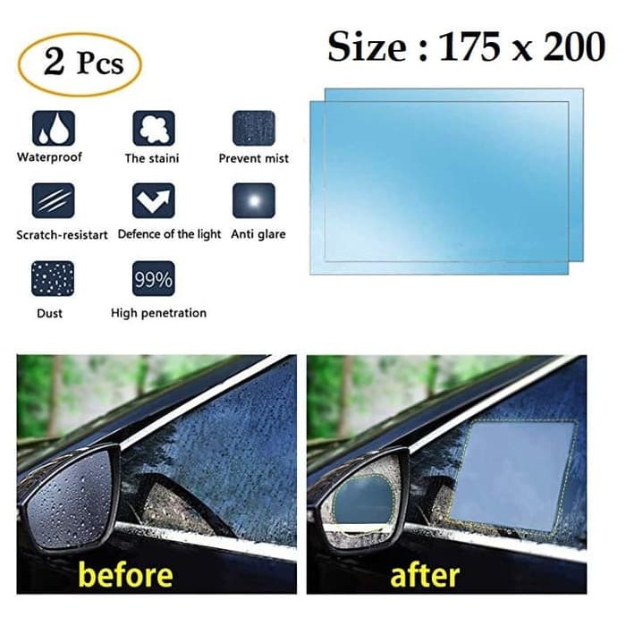 STIKER JENDELA MOBIL ANTI HUJAN FOG EMBUN LIHAT TEMBUS SPION KACA FILM BESAR ANTI AIR BENING KACA MOBIL