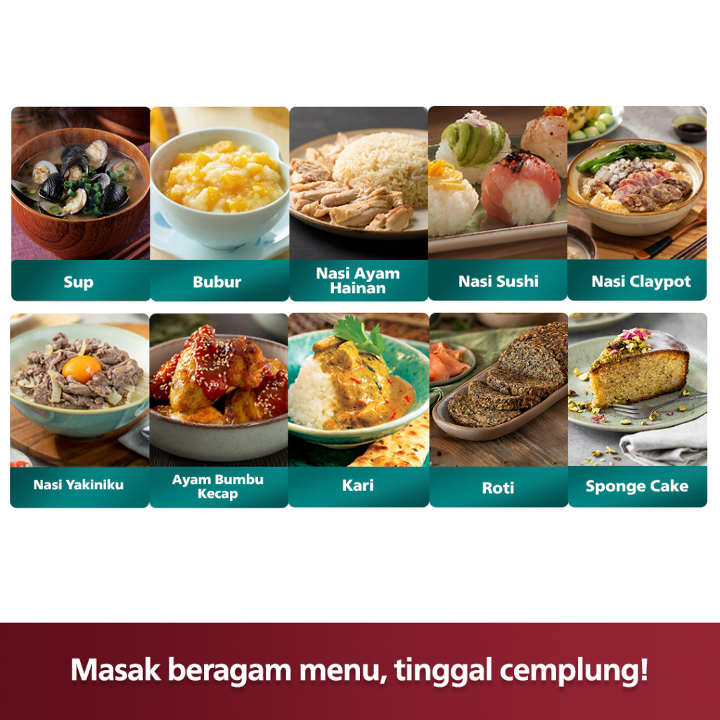 PHILIPS 1.8L Digital Rice Cooker HD4515/90 - 400Watt, Penanak Nasi 10 Menu, mejikom multi fungsi