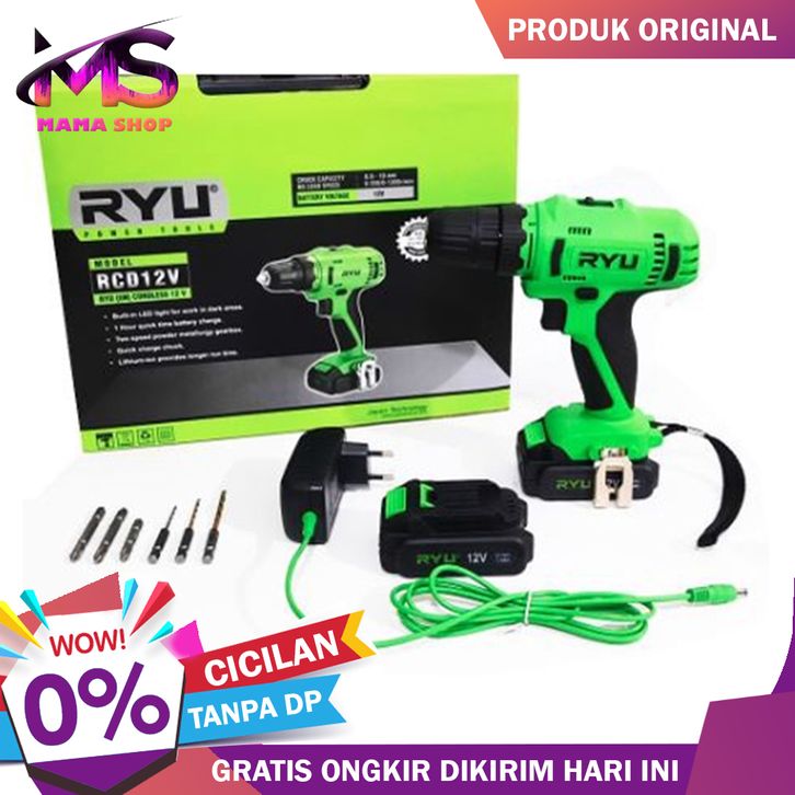 DISKON/ORIGINAL!!CORDLESS IMPACT DRILL RYU RCD12V MESIN BOR BATRE GARANSI RESMI TEKIRO RYU!!! // RYU CORDLESS DRILL RCD