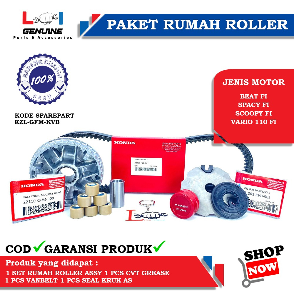 PAKET RUMAH ROLLER SET VANBELT BEAT FI (STATER KASAR) & KIPAS ROLLER SCOOPY FI, VARIO 110 FI, BEAT FI
