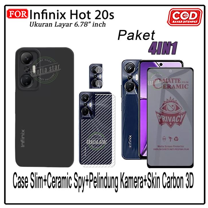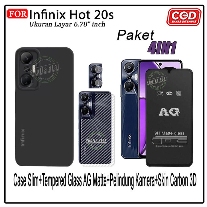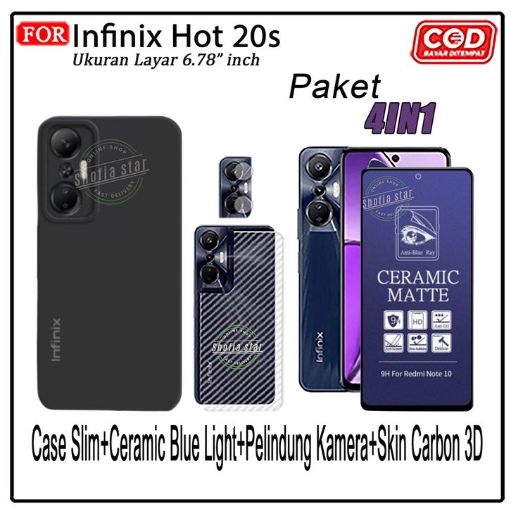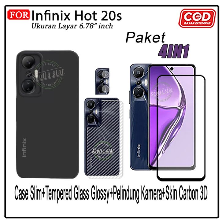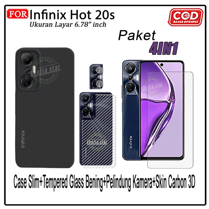 PAKET 4IN1 Case Infinix Hot 20s Hot 20i Hot 20 5G Hot 12 Play Zero 20 5G Softcase Slim Black Premium Protect Casing