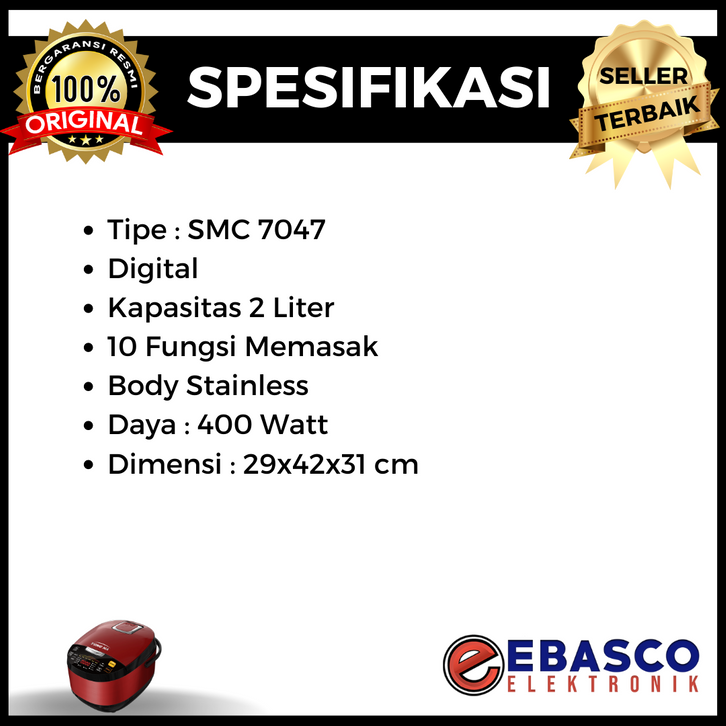 YONG MA Rice Cooker SMC 7047 Digital - Kapasitas 2 Liter Anti Lengket Dengan Pilihan Waktu Masak