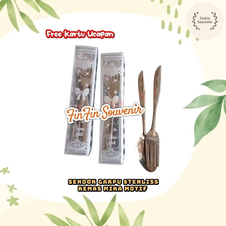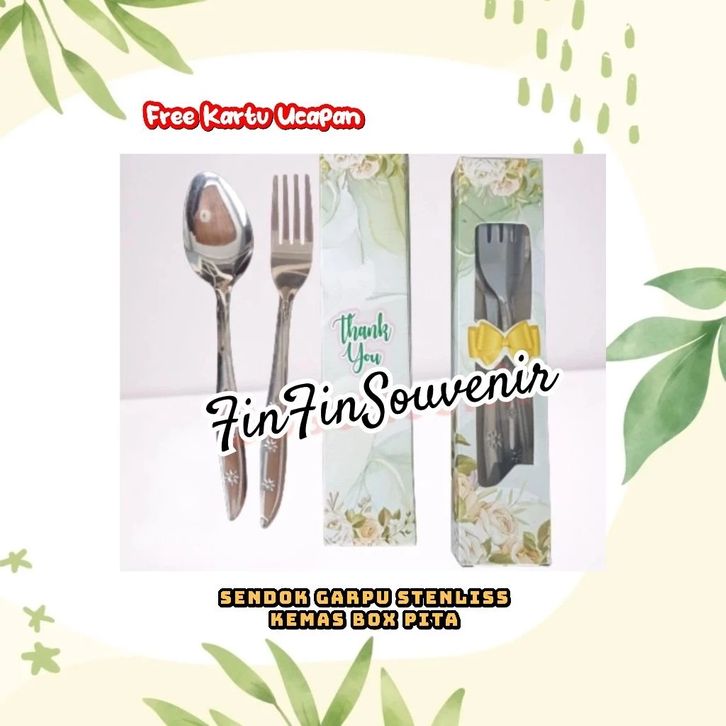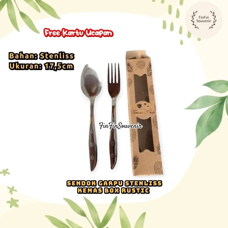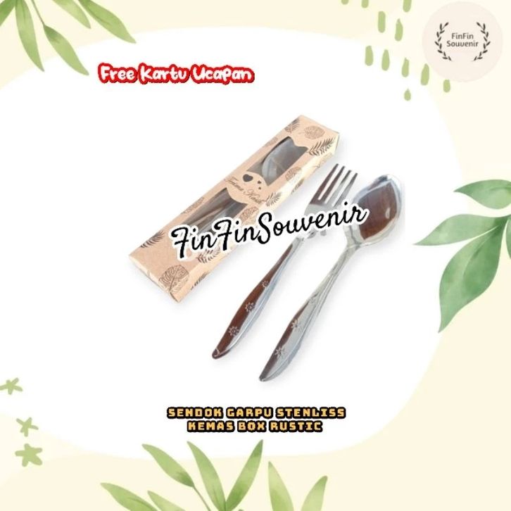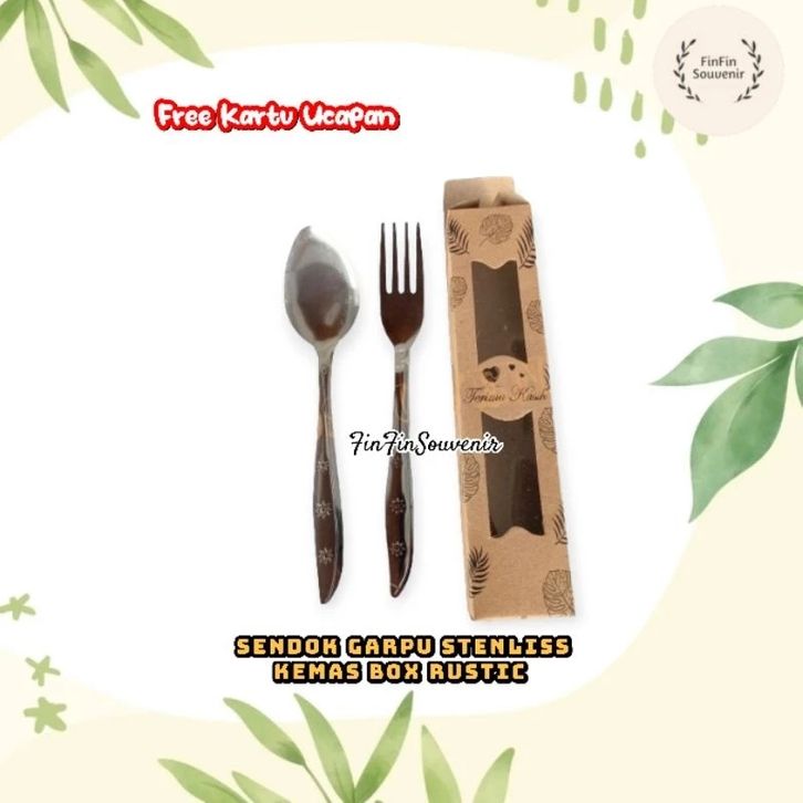 Souvenir Sendok Garpu Stenlis kemas Box Rustic Souvenir pernikahan khitanan ultah free kartu ucapan 100 Pcs