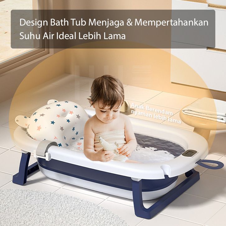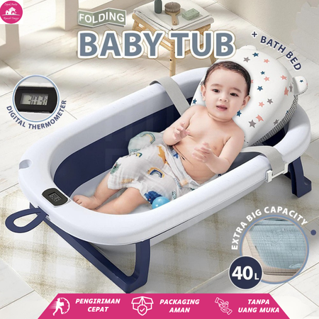 HUGO Foldable Baby Bath Tub / Bak Mandi Bayi Lipat Sugar Baby Portable Pengukur Suhu dan Bantal#murah/karet/besar/anak