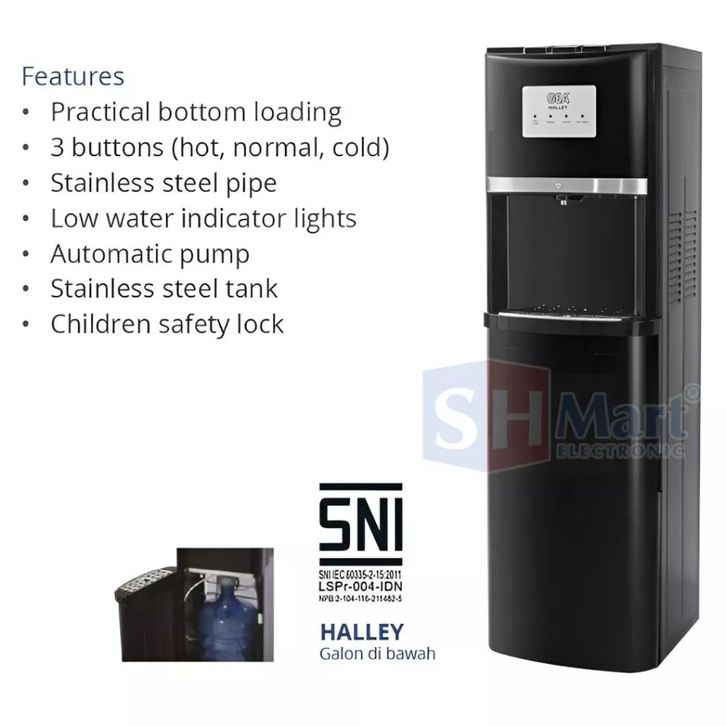 DISPENSER GALON BAWAH GEA HALLEY LOW WATT GARANSI RESMI