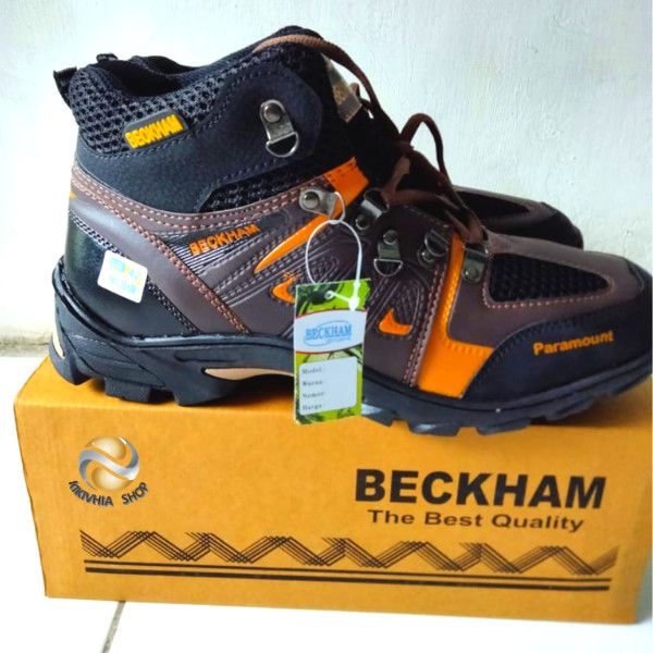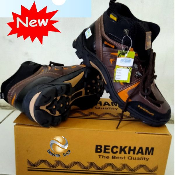 SEPATU GUNUNG PRIA SEPATU BECKHAM / SEPATU PRIA HIKING TOURING / SEPATU SAFETY - COKLAT TERMURAH