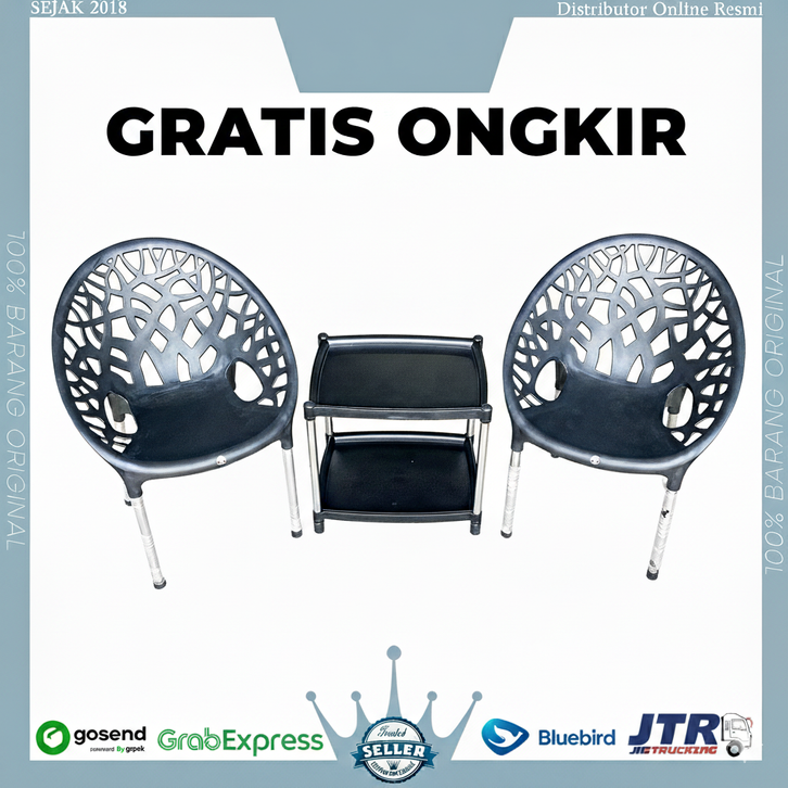 Kursi Teras Plastik 1 Set 2 Kursi Kr5 Twinpan dan Meja Teras T4050 Kursi Set Modern Putih Hitam Kursi Tamu Minimalis