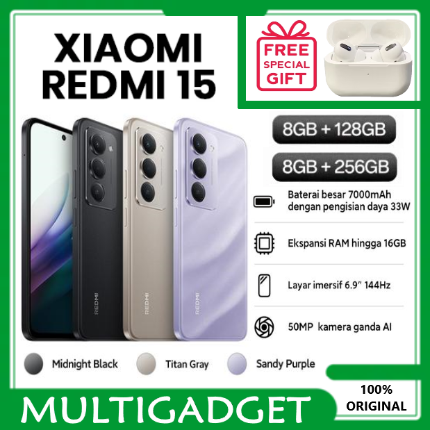 Xiaomi Redmi 15 8GB/128GB - 8GB/256GB NFC Baterai 7000mAh, Snapdragon® 685, Camera 50MP | REDMI 15 8/256GB GARANSI RESMI