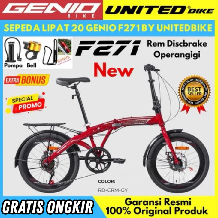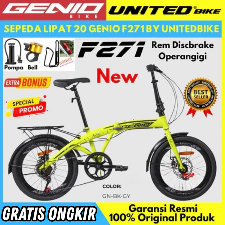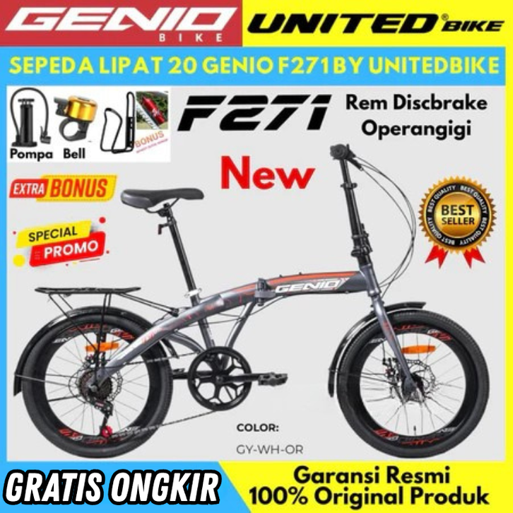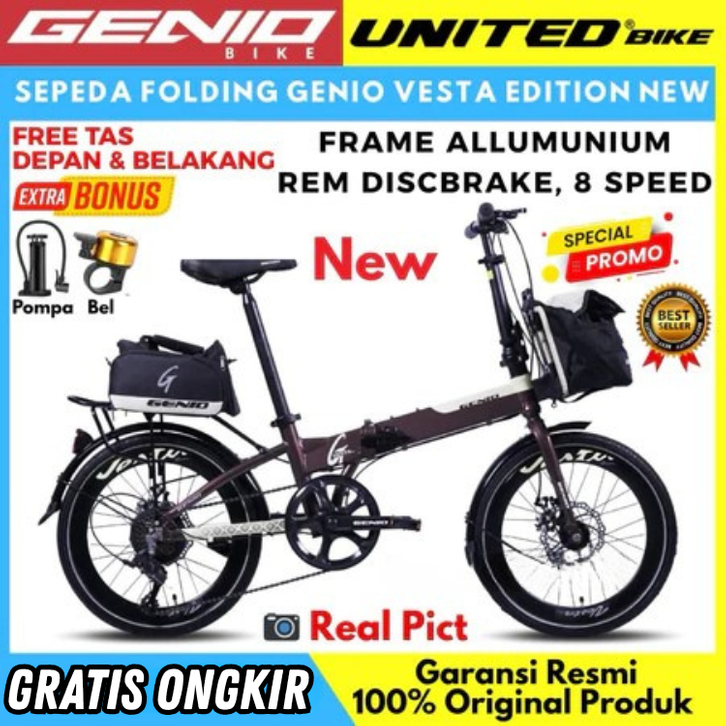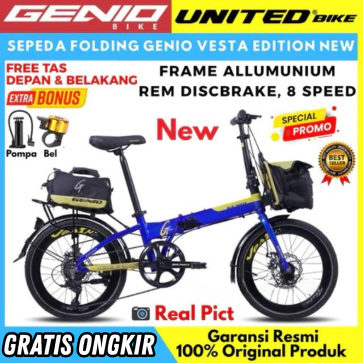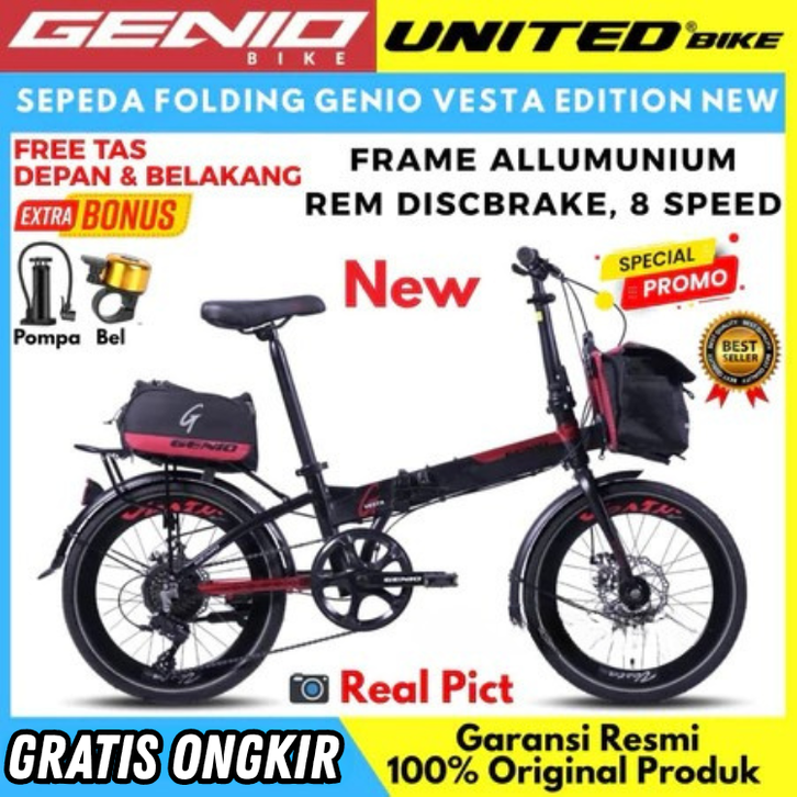 SEPEDA LIPAT 16 20 INCH ANAK ANAK DEWASA GENIO VESTA GENIO F371 REM DISCBRAKE FOLDING BIKE MURAH BEST SELLER