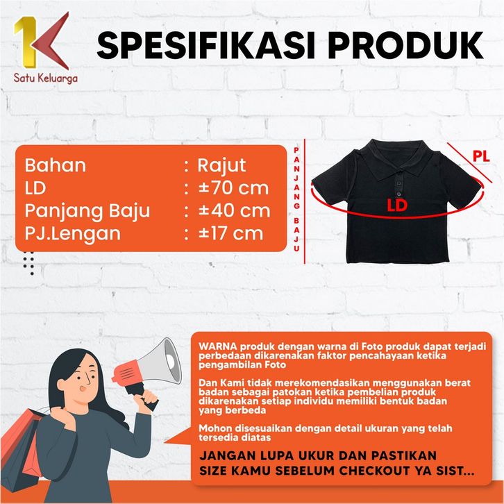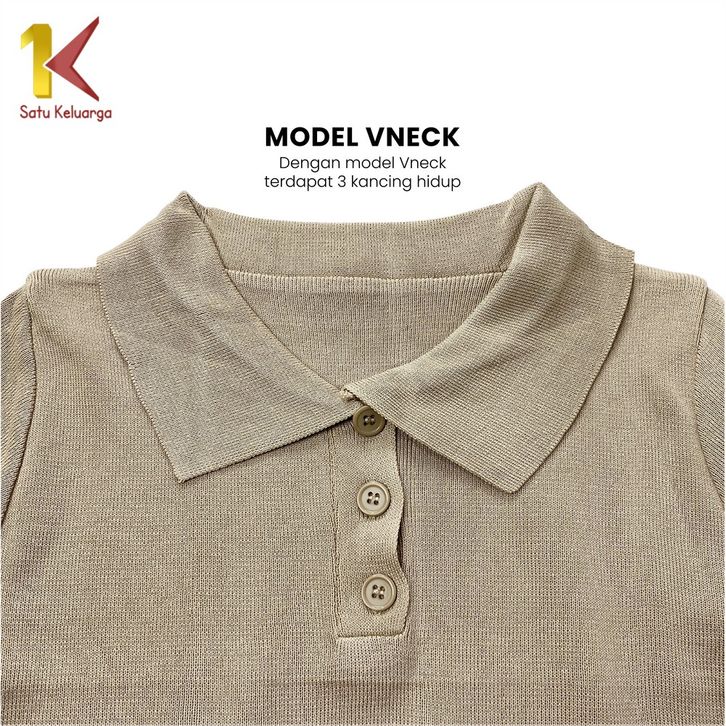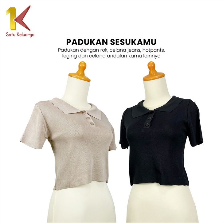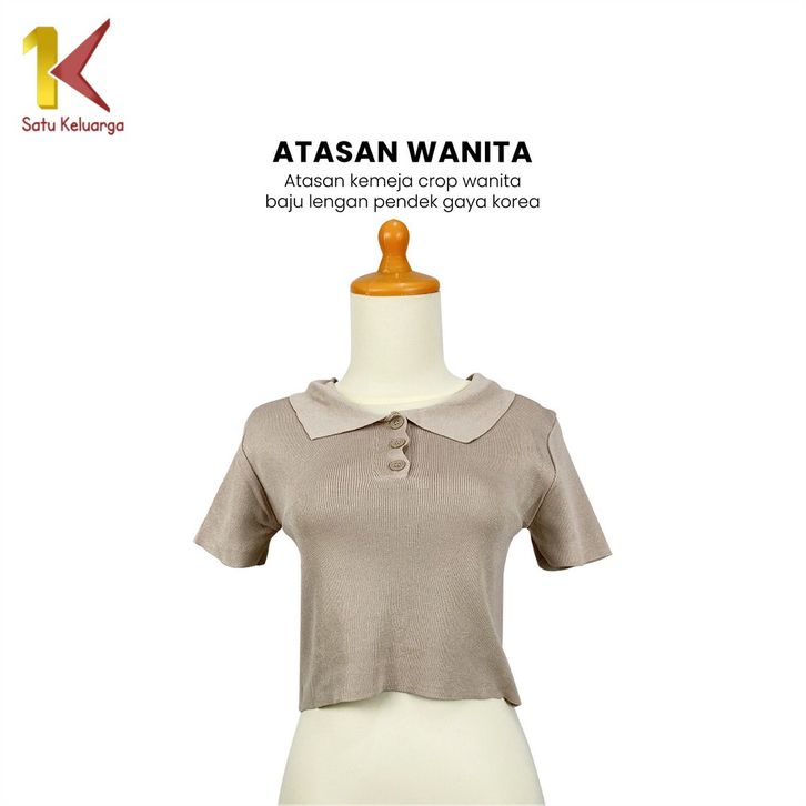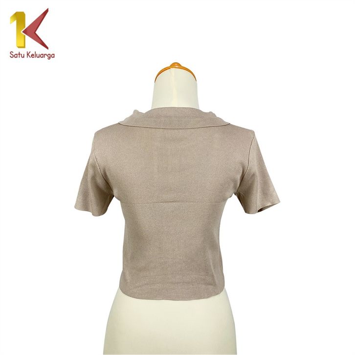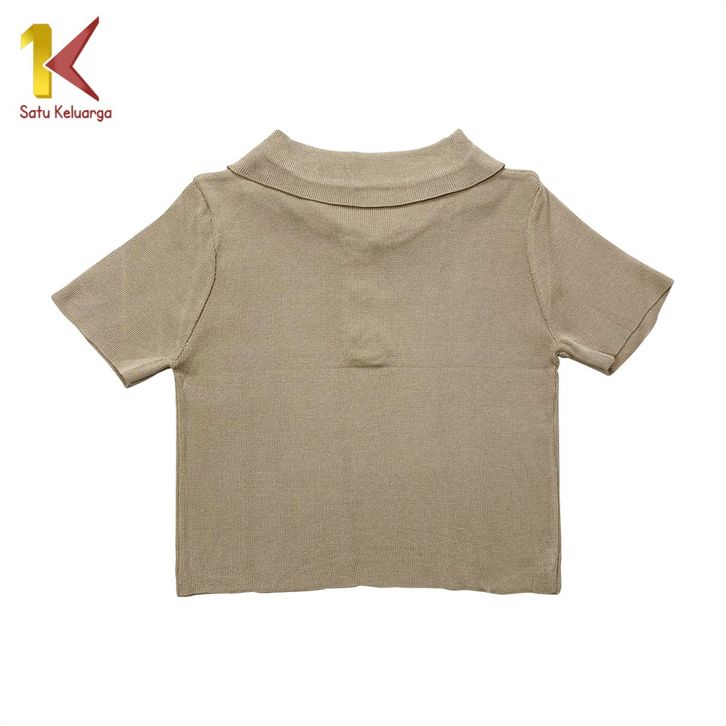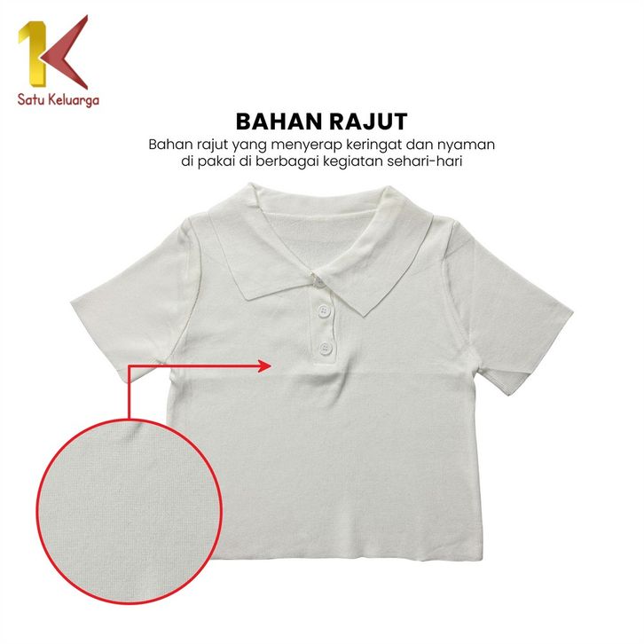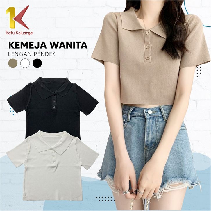 Kemeja Wanita Lengan Pendek Polos Bahan Rajut Kaos Berkerah Atasan Crop Wanita Short Sleeeve Tshirt 1K P369