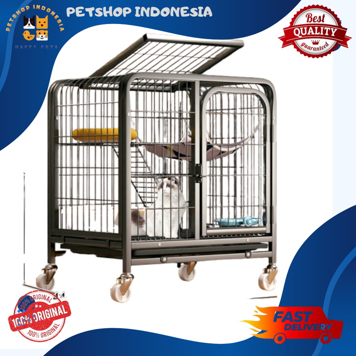 Kandang Kucing Ukuran Besar Dengan Rumah Kucing dan Kotak Pasir Cocok Untuk Dalam Ruangan