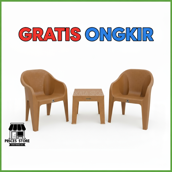 Kursi Teras Plastik 1 Set 2 Kursi Teras Santai Tcc 500 Napolly dan Meja Serbaguna Napolly Mapan Jati Kursi Tamu Plastik