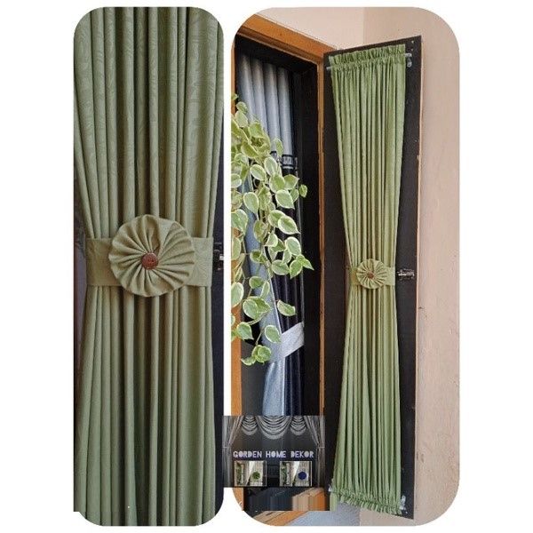 Gorden jenden/gorden polos kekinian murah motif polos green Model Pita Ikat Kupu/Gorden/ Gorden jenden murah