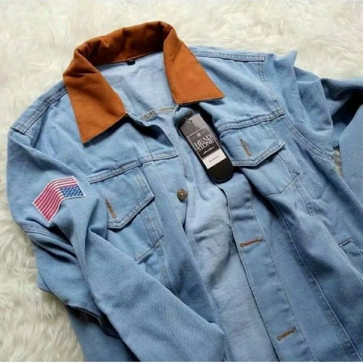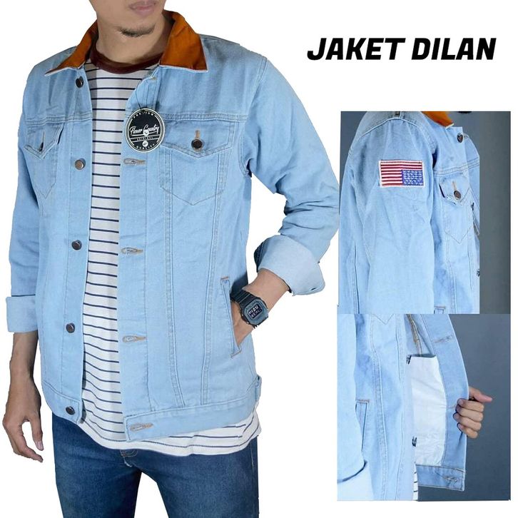 JAKET JEANS DILAN 1990 DENIM BAHAN TEBAL KERAH OREN