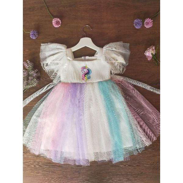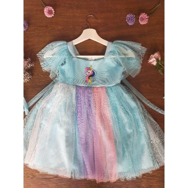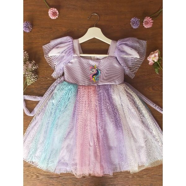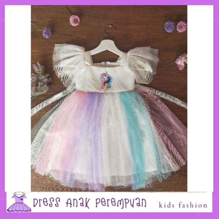 1-9Tahun Dress Pesta Anak Perempuan Rainbow Gaun Anak Perempuan/Gaun Putri/Gaun Jala Pelangi Bayi Perempuan