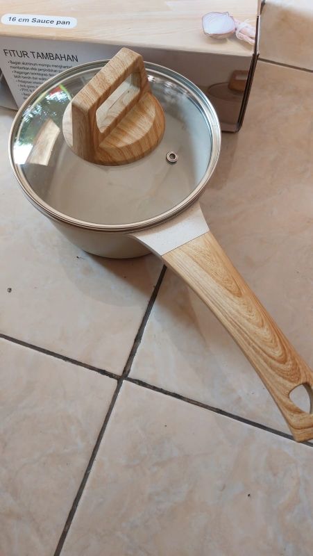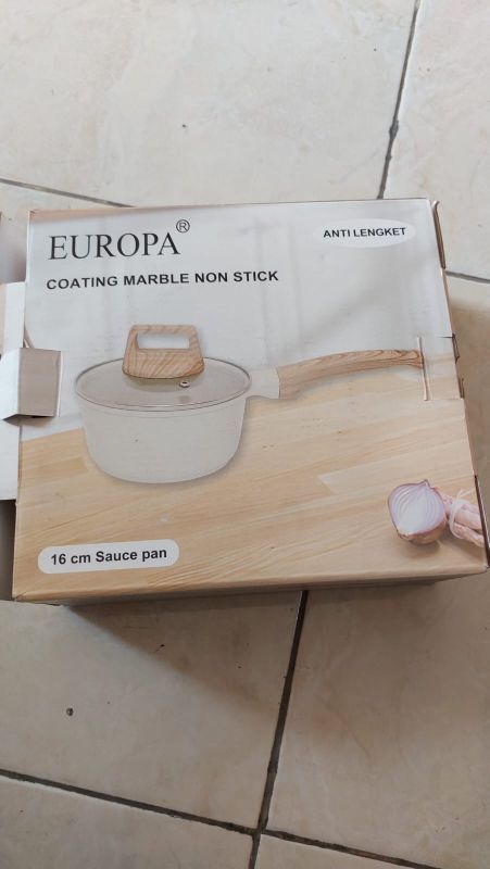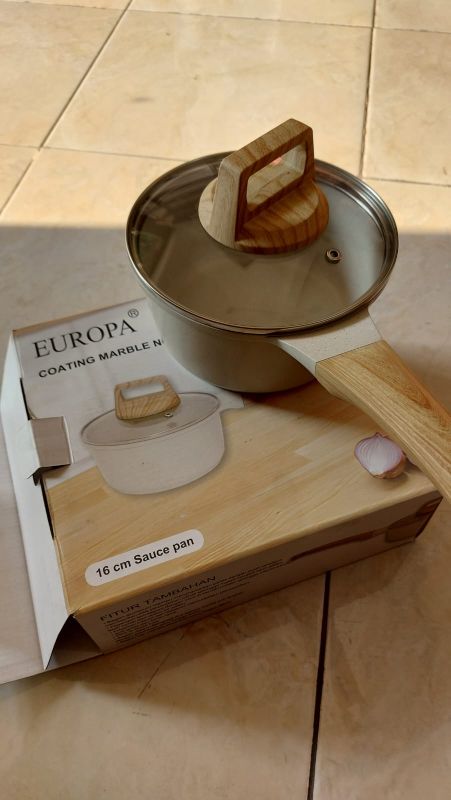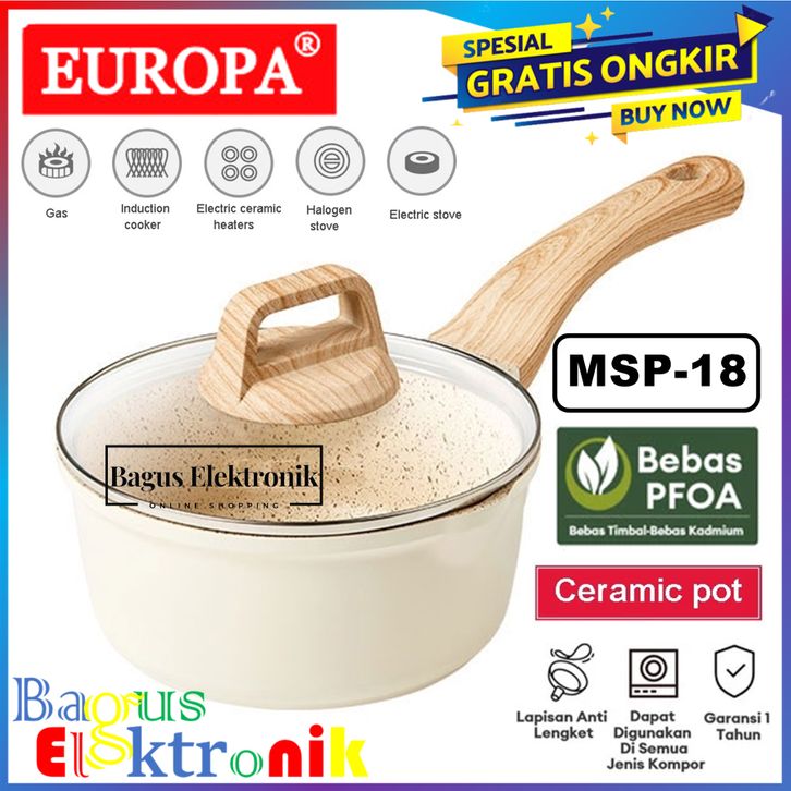 EUROPA Sauce Pan MSP-18 Non Stick Premium 18 Cm Panci Susu Anti Lengket Lapisan Keramik Marmer + Tutup Kaca - Cream