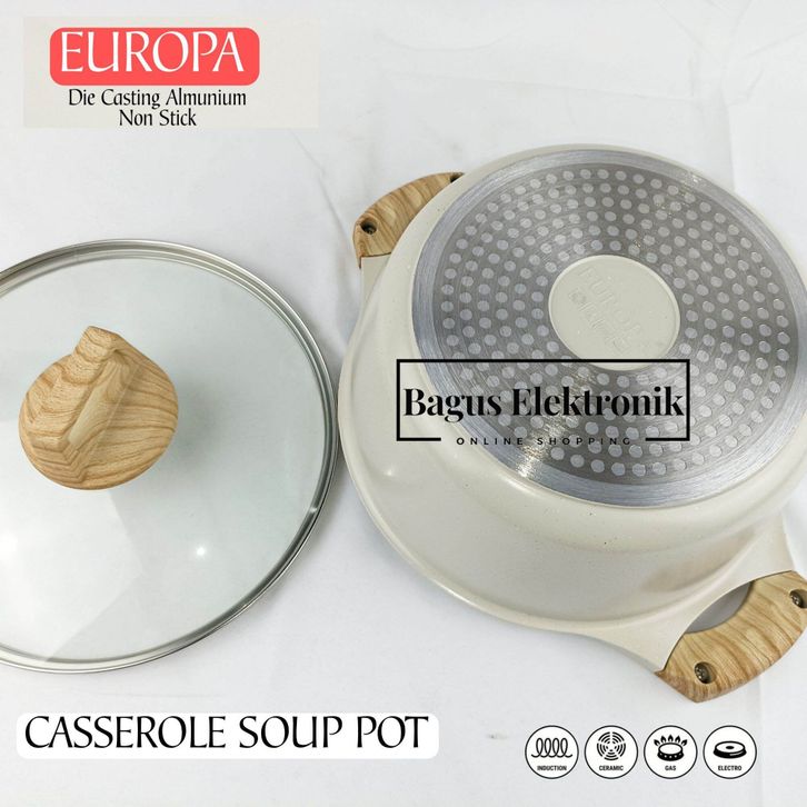 Europa Casserole Marble 20 Cm Panci Soup Pot Anti Lengket + Tutup Kaca Panci Sop Keramik Marbel AntiLengket tanpa minyak