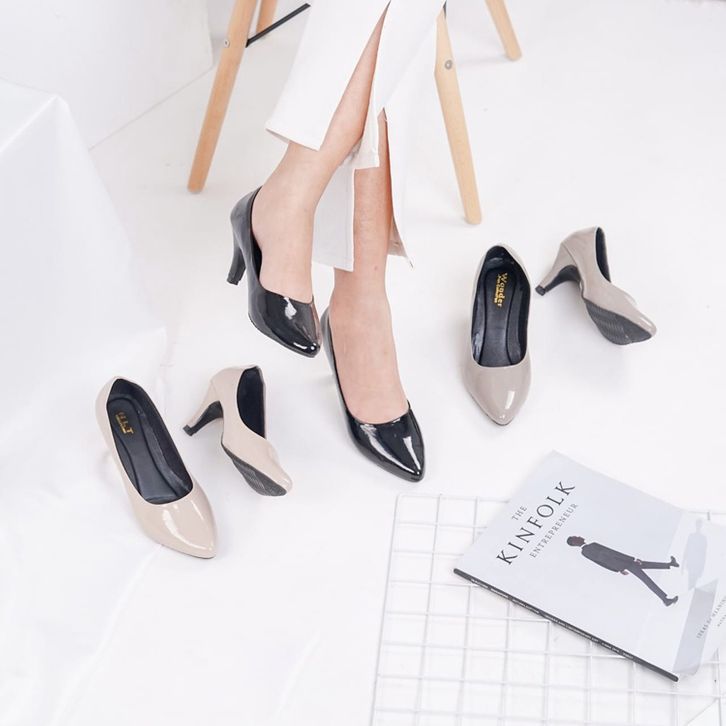 WSW-High Heels Wanita Murah Kerja Pump PANTOFEL GLOSSY
