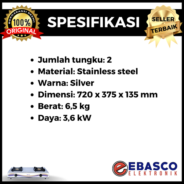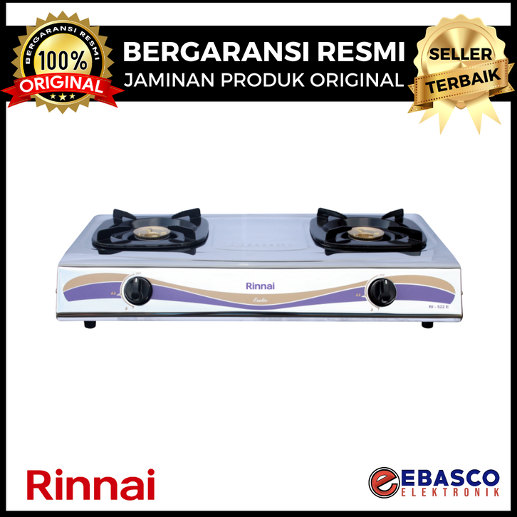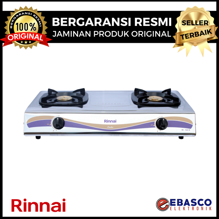 RINNAI Kompor Gas RI 522 E / RI522E - 2 Tungku Bahan Stainless Mudah Dibersihkan