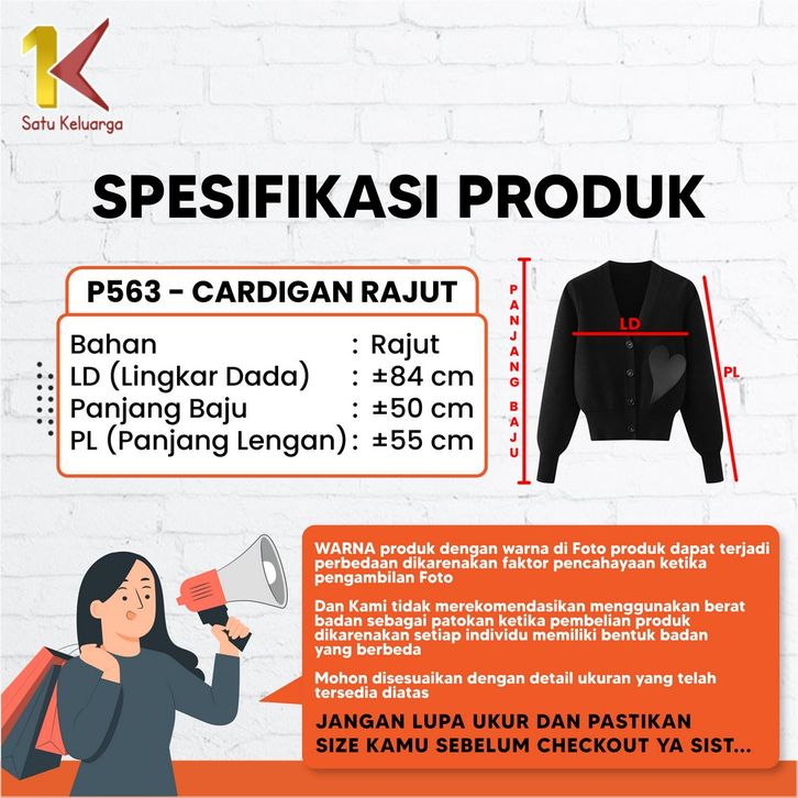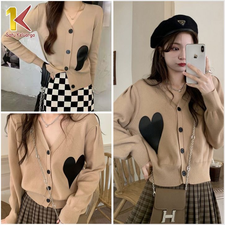 Cardigan Rajut Wanita Motif Love Outer Atasan Wanita Cardy Rajut Style Kardigan Lengan Panjang 1K P563