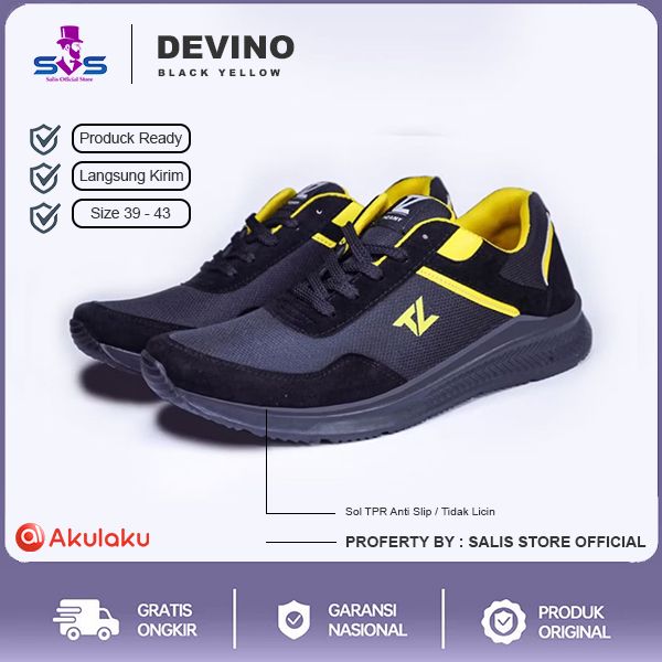 DEVINO BLACK YELLOW | Salisstore - TZN | Sepatu Running Pria Hitam Original