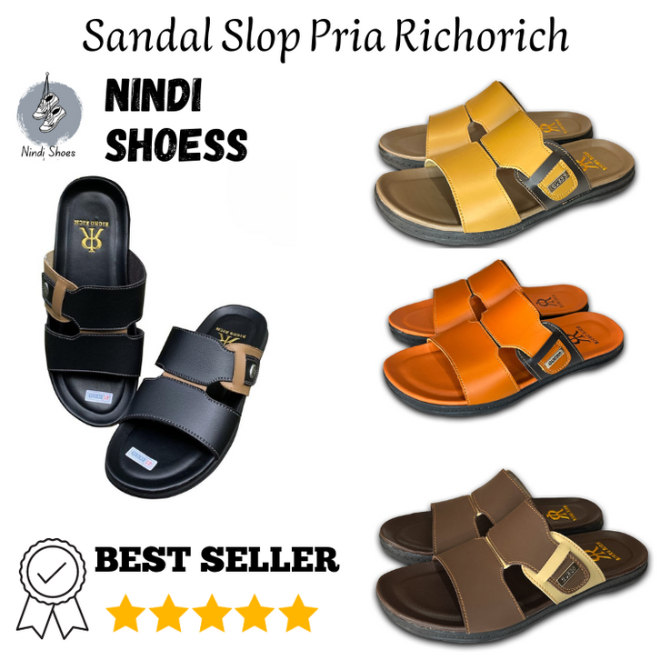 SANDAL SLOP PRIA RICHORICH BIRU URBAN BLUE BAHAN KULIT NYAMAN NGEMAL KEKINIAN