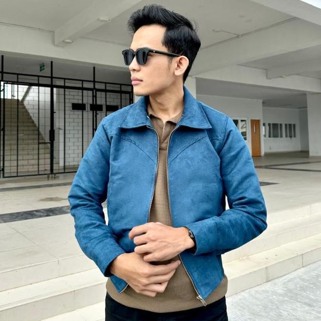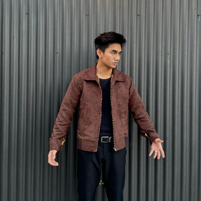 Jacket Boxy Pria Suede Jaket Work Boxy Zipper Panjang Polos Pria Kasual Suede Lembut Keren
