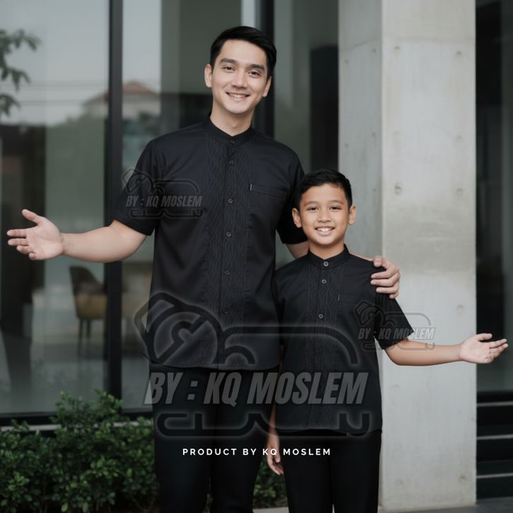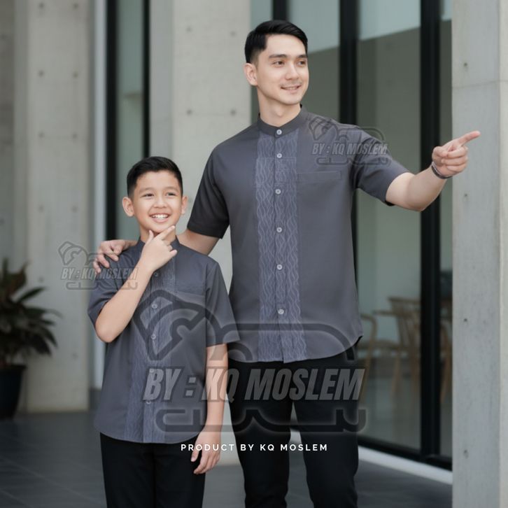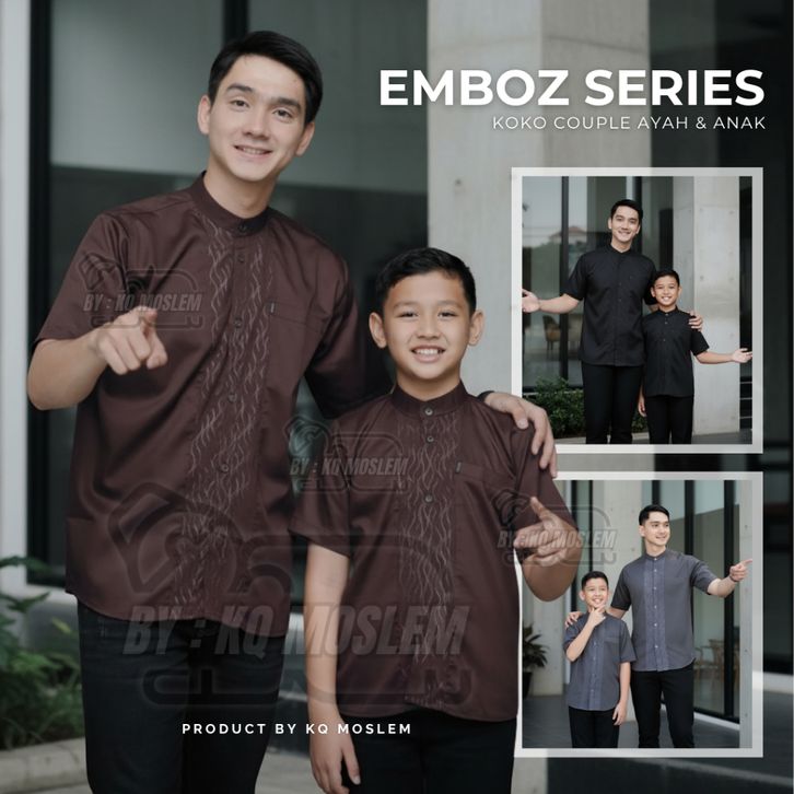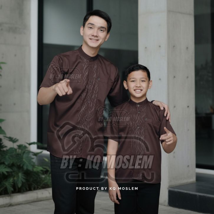 Baju Koko Couple Ayah Anak Laki Laki Warna Mahogany Lengan Pendek Motif Embosh Bahan Katun koko Terbaru 2026