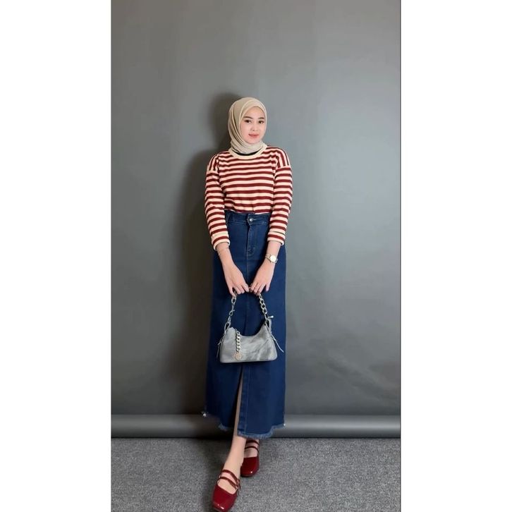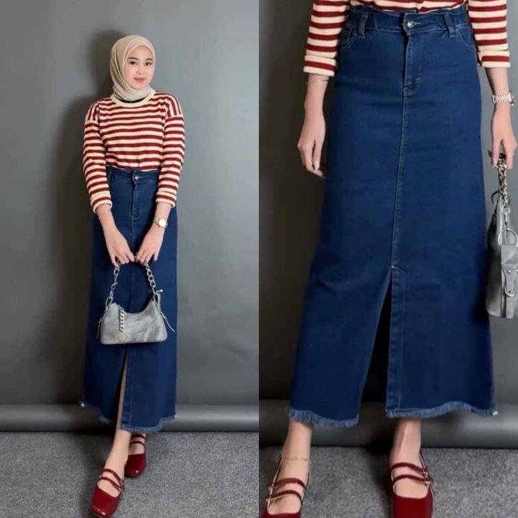 Story Rok Jeans 7/9 Wanita // Coral Skirt Jeans Belah Depan Rok Jeans Wanita Best Seller