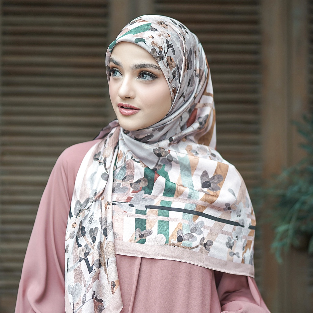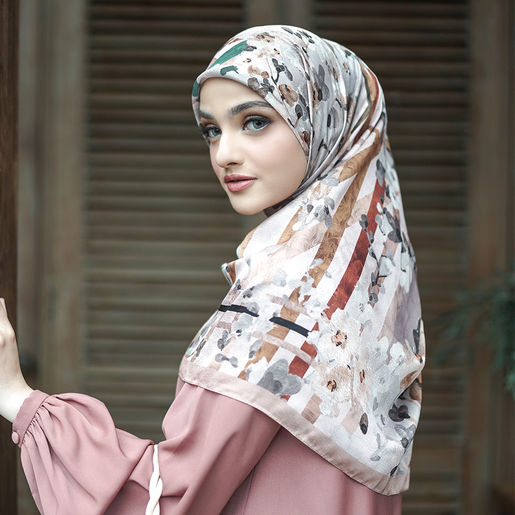 MANDJHA LAVISH BROWN SILK SCARF BY IVAN GUNAWAN - JILBAB HIJAB SEGI EMPAT ORIGINAL MANDJHA BAHAN PREMIUM