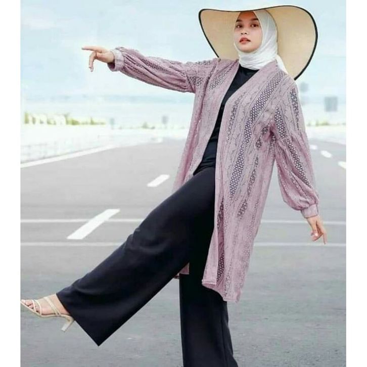 KARDIGAN BRUKAT WANITA LONG OUTER PAKAIAN FORMAL CASUAL LENGAN PANJANG