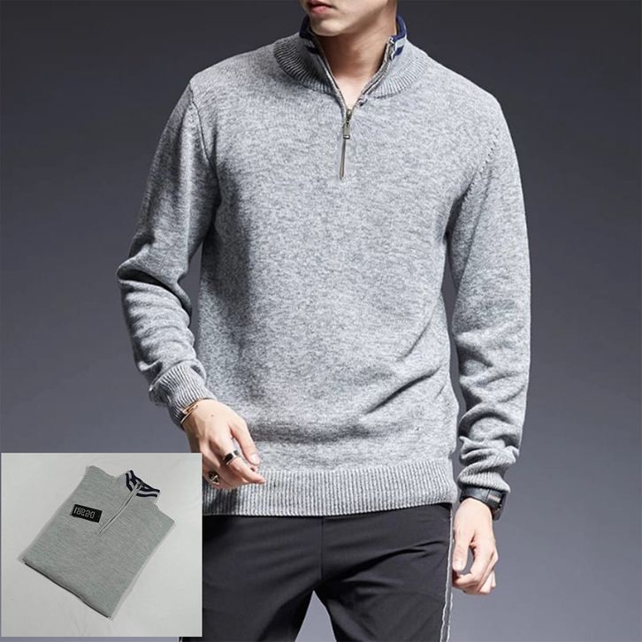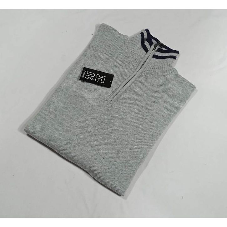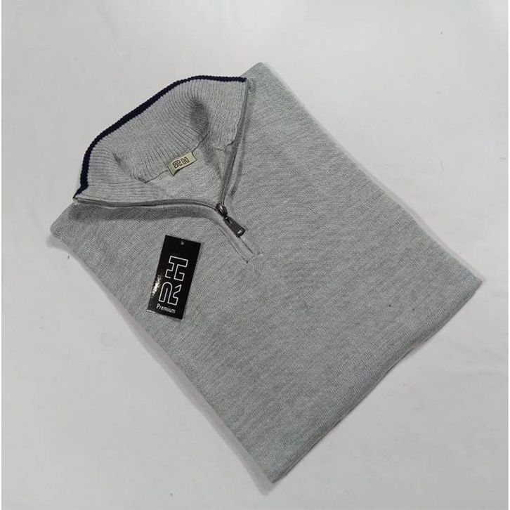 RH - Sweater Rajut pria tangan panjang kerah tinggi Zipper resleting twist abu korean style