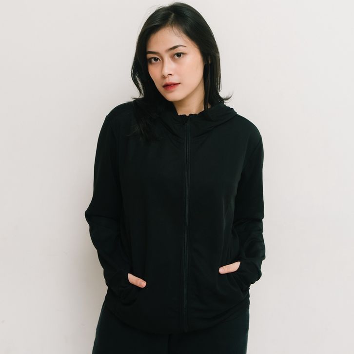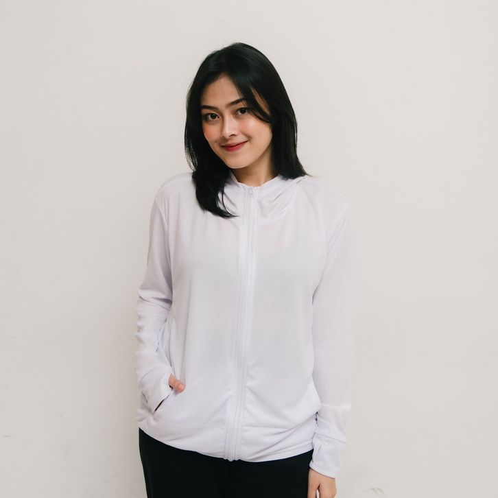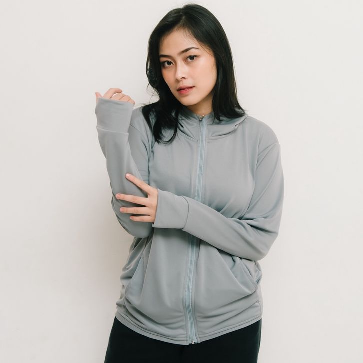 Jaket Olahraga Wanita Jaket Mesh Hoodie UV Protection, Jaket Wanita Polos Outer Sport, Jaket Running