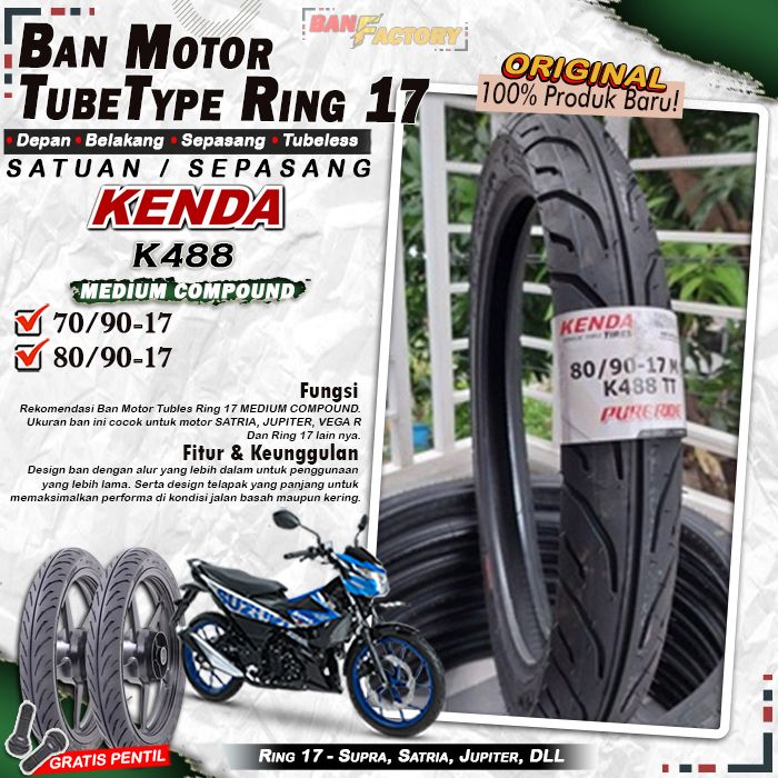 Ban Motor Kenda K488 Ring 17 Ban Motor Supra Satria Jupiter Tubles Depan Belakang Sepasang Ring 17