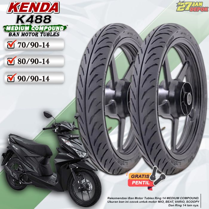 Ban Motor Matic Tubeless Kenda K448 Ring 14 Ban Motor Beat Vario Scoopy Tubles Depan Belakang Sepasang Ring 14
