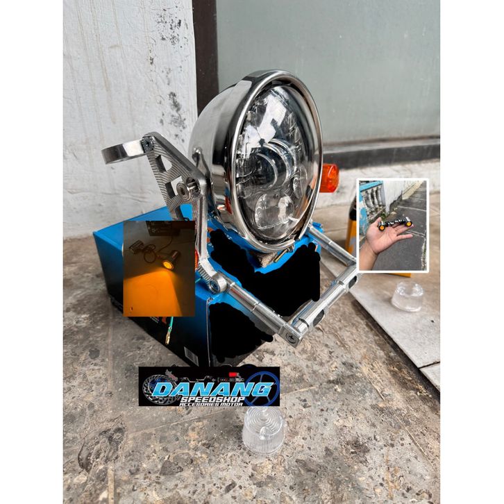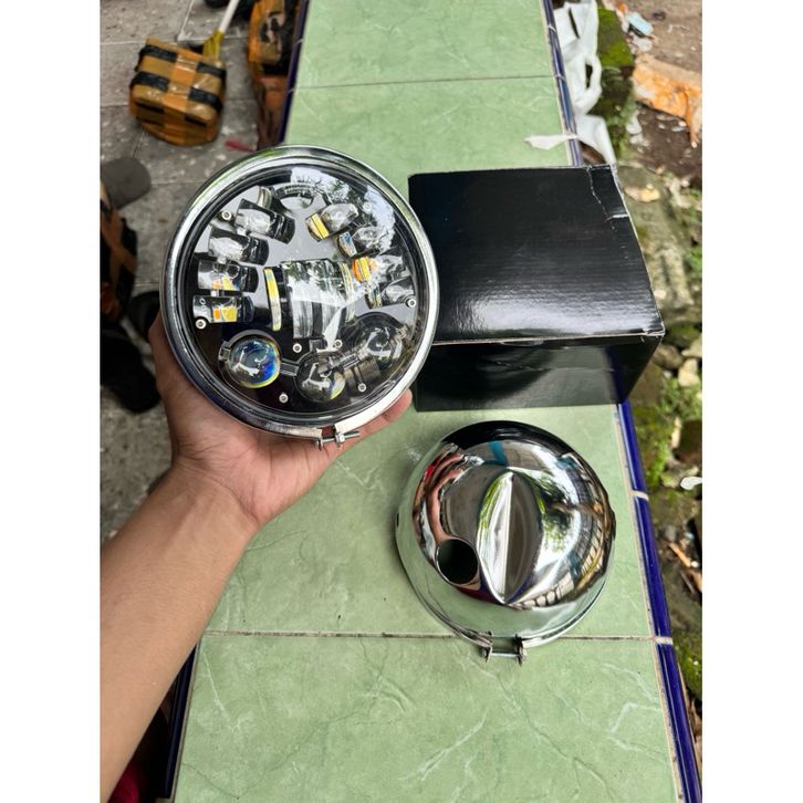 A023 Lampu Daymaker 5 75 Inch Set Batok L2g Set Kupingan Cnc set Sen TM pangkon 16 led dus hitam depan dymaker pnp cb