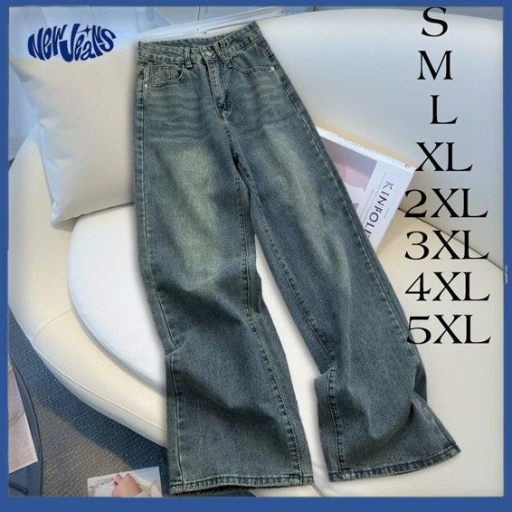 Celana Jeans Wanita Big size Jumbo Jeans High Waist Denim Panjang Pinggang Karet Baggy Pants Cutbray