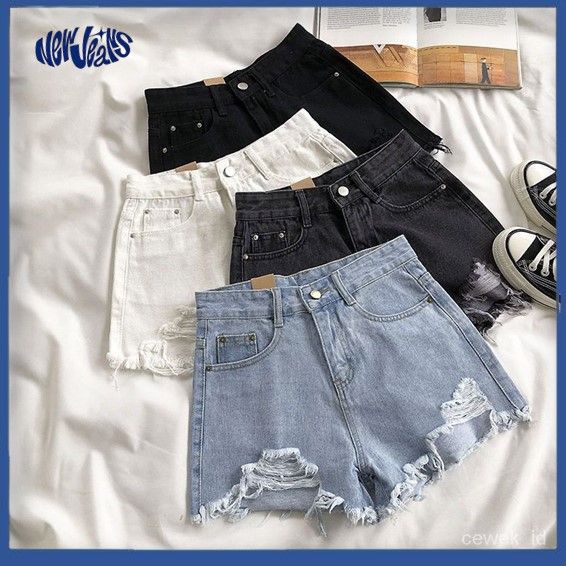 CELANA JEANS WANITA PENDEK KEKINIAN OOTD KOREAN STYLE HOT PANTS JEANS SOBEK WANITA SHORTS PANTS WANITA SANTAI OVERSIZE